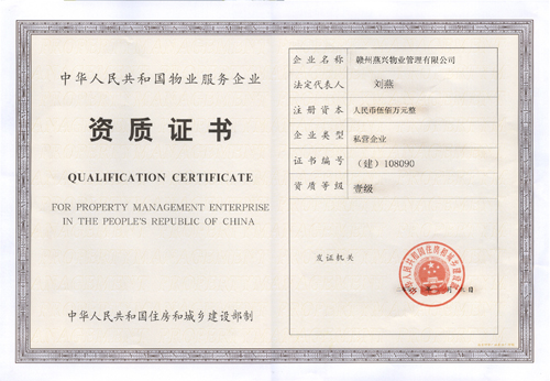 中華人民共和國(guó)物業(yè)服務(wù)企業(yè)資質(zhì)證書(shū)