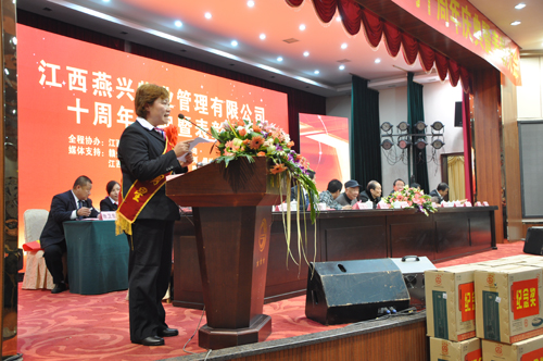 首先,燕興物業(yè)董事長(zhǎng)劉燕在大會(huì)上致歡迎辭,她向在百忙中抽空來(lái)參加表彰大會(huì)的領(lǐng)導(dǎo)和嘉賓們表示感謝,向戰(zhàn)斗在一線的公司員工表示敬意;接著中國(guó)物業(yè)管理協(xié)會(huì)秘書(shū)長(zhǎng)柴勇致辭,他向走過(guò)不平凡十年的燕興人表示敬意,并鼓勵(lì)全體員工再接再厲再創(chuàng)輝煌;公司總經(jīng)理劉南斗作了總結(jié)報(bào)告,他回顧了燕興物業(yè)艱苦創(chuàng)業(yè)的十年,奮力拚搏的十年,同甘共苦的十年,點(diǎn)點(diǎn)滴滴感人的故事激勵(lì)著員工們團(tuán)結(jié)一致再創(chuàng)十年輝煌。員工代表、業(yè)主代表也在大會(huì)上發(fā)言。最后,公司常務(wù)副總經(jīng)理陳靜宣布獲得“十大明星”人員的名單以及為在公司連續(xù)工作七年以上對(duì)企業(yè)做出奉獻(xiàn)的功勛人員名單,獲獎(jiǎng)人員上臺(tái)領(lǐng)獎(jiǎng)。