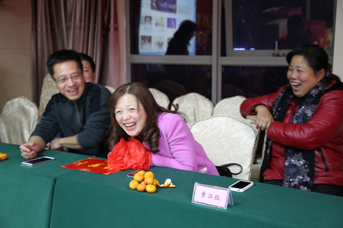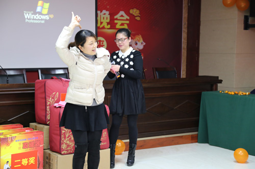 晚會上,首先由傳統節目“擊鼓傳花”拉開序幕,當紅花落在手中,鼓點戛然而止時,手拿紅花的人必須說出含“羊”字的祝賀語,“喜氣洋洋、洋洋得意、羊年大吉”等吉祥語此起彼伏。晚會上還精心準備了幾個小游戲,由各項目部派出精兵強將參加了“蘿卜蹲、你比劃我來猜”等游戲,勝出者手捧獎品喜笑顏開,抽獎環節更是讓人期盼揪心。接著員工們紛紛上臺亮出嗓門,一曲曲高歌將晚會推向一個又一個高潮,董事長劉燕夫婦也為大家深情演唱了一首老情歌。