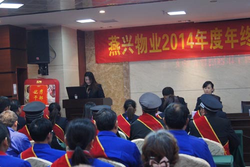 2015年2月7日,燕興物業2014年終工作總結暨表彰大會在公司大會議室隆重召開。此次大會共選出代表與獲獎人員160余人,大家個個滿懷著喜悅之情,張張笑臉熠熠生輝。