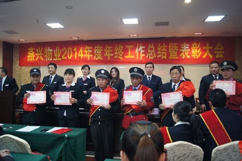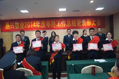 2014年度在近4000名燕興人的共同努力下,完成了年度的各項任務和指標,接管項目109個,管轄面積達1274萬平方米。為了樹立典型,表彰先進,進一步弘揚和激勵員工愛崗敬業的工作熱情,形成人人爭先創優、人人爭為公司發展做貢獻的良好氛圍,全面完成公司下達的2015年各項任務指標。2014年度共評選出“先進集體”2個、“勞動模范”2名、“優秀管理干部”12名、“優秀員工”71名、“優秀新人”5名。