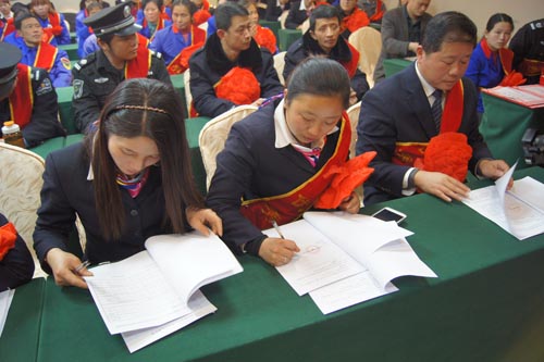 大會上董事長劉燕同志向大家致辭,她勉勵大家要向優秀看齊,以表率為榜樣,在新的一年中勤奮工作,再做新貢獻。常務副總經理陳靜同志做了年度工作總結報告,總經理劉南斗同志也做了重要講話,他向大家描繪了公司發展前景,并寄語大家要努力工作,再創新成績。大會間,公司將2015年度任務和指標化整為零,下達到各項目部,并與七個項目部經理現場簽訂了2015年度目標管理責任書。