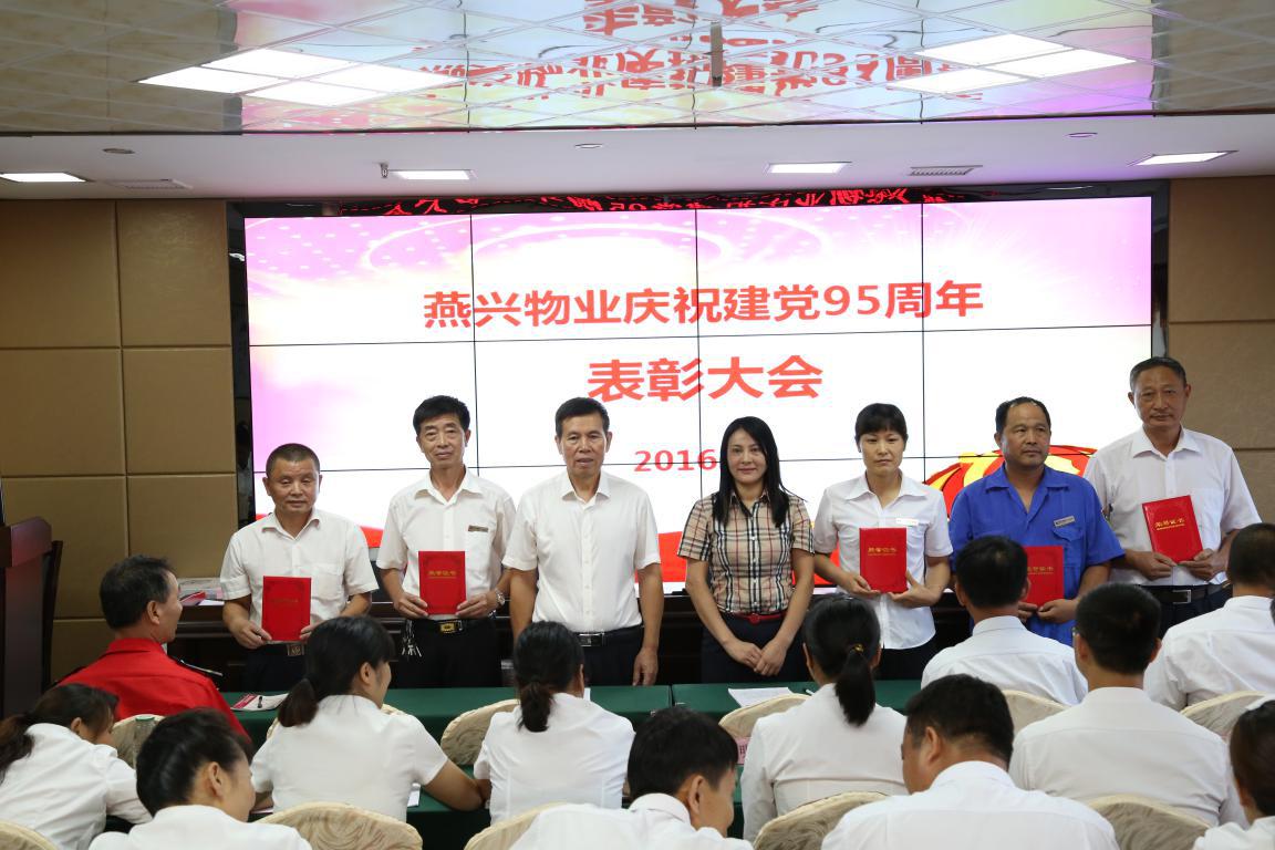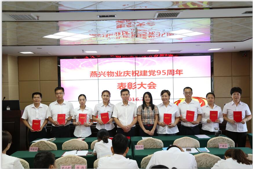 2016年7月1日,江西燕興物業慶祝中國共產黨成立九十五周年表彰大會在公司會議中心舉行。公司董事長劉燕、黨支部書記劉南斗、公司全體黨員及中層以上管理干部參加了會議。公司駐外縣(市)各分公司黨員和中層以上管理干部利用公司視頻會議系統參加了表彰大會。
