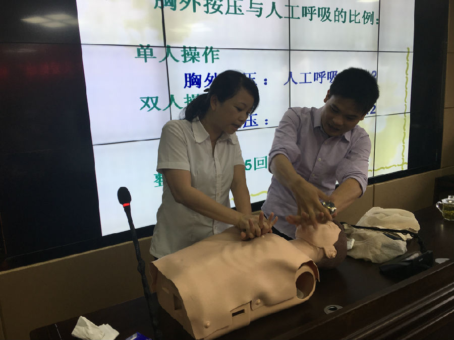 這堂講座,公司專程邀請江西省科宣健康咨詢服務中心的老師前來授課。講座內容主要包括發生突發事件的應急處理、CPR現場緊急救護知識、工傷事故的應急處理和職場人員常見病的預防及改善等。