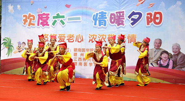 5月31日上午, 贛南醫學院第三附屬醫院、贛州市鐵路小學,江西燕興物業管理公司、贛南醫學院康復學院等單位組織的《歡度六一  情暖夕陽》敬老慰問活動,在贛南醫學院第三附屬醫院醫養結合養老中心喜氣洋洋的進行。