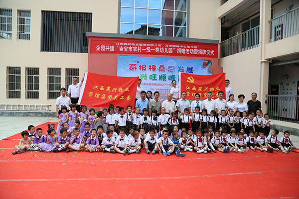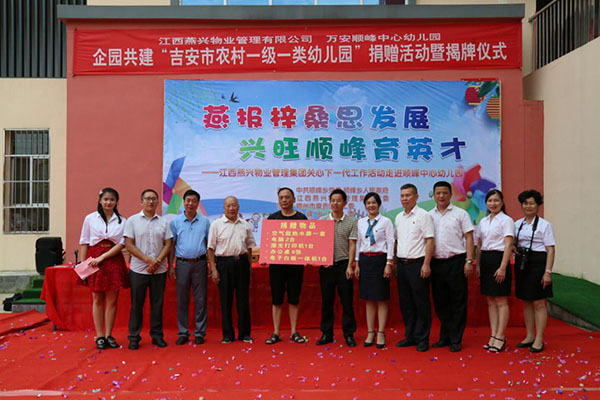 捐贈活動中,進行了順峰鄉企園共建吉安市農村一級一類幼兒園的揭牌。