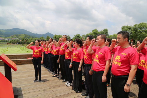 在古田會議舊址,集團黨委書記、劉燕董事長帶領(lǐng)大家重溫入黨誓詞