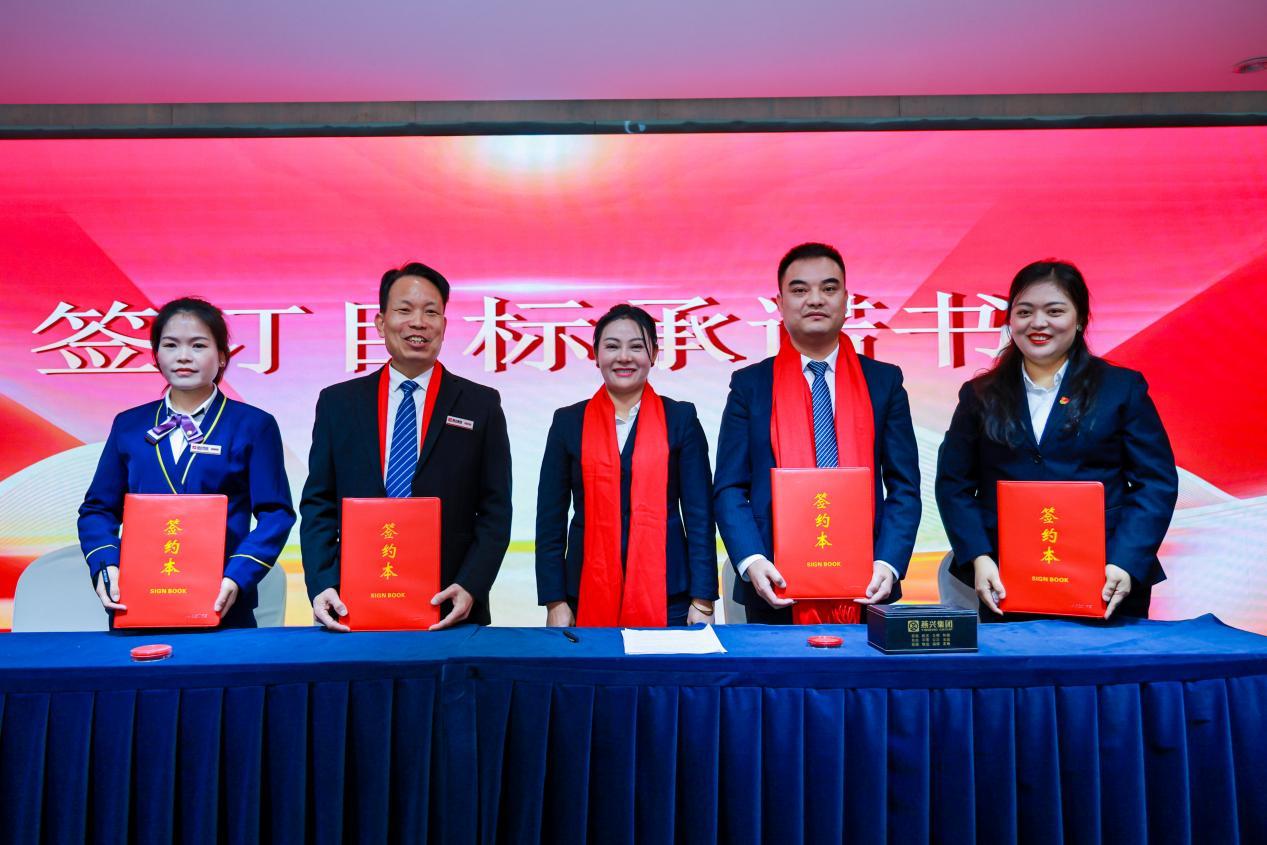 會上,集團董事長劉燕與集團市場拓展部、各子公司、分公司簽訂2025年經(jīng)營目標承諾書。承諾書的簽訂,既是完成各項經(jīng)營目標的軍令狀,也是自我加壓、攀登超越的奮進宣言,詮釋著一份責(zé)任、一種擔(dān)當(dāng)。集團各部門、子公司、分公司將聚焦經(jīng)營,將考核目標轉(zhuǎn)化為行動計劃,逐級分解,有力有序、保質(zhì)保量完成全年各項工作任務(wù)。